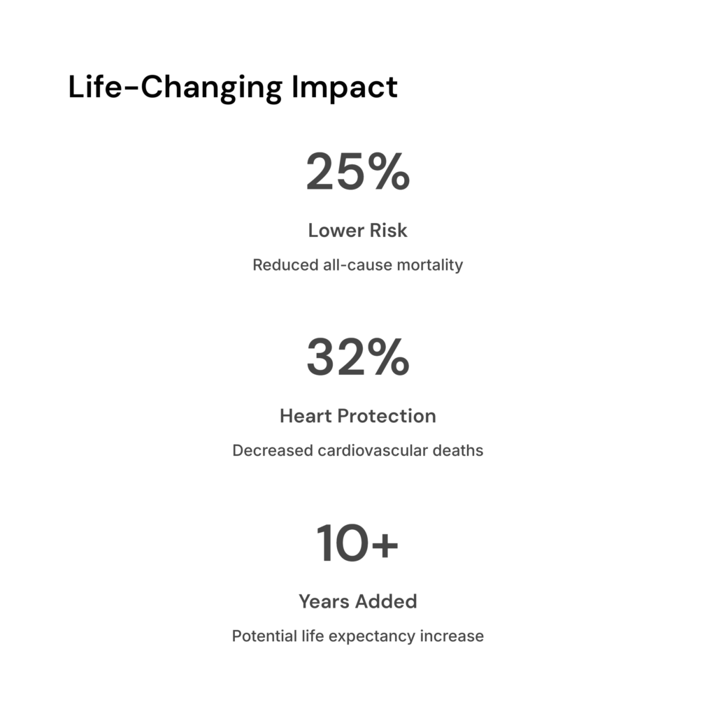 These benefits aren’t just numbers on a chart – they translate into real-world heart protection, potentially adding years to your life and life to your years.