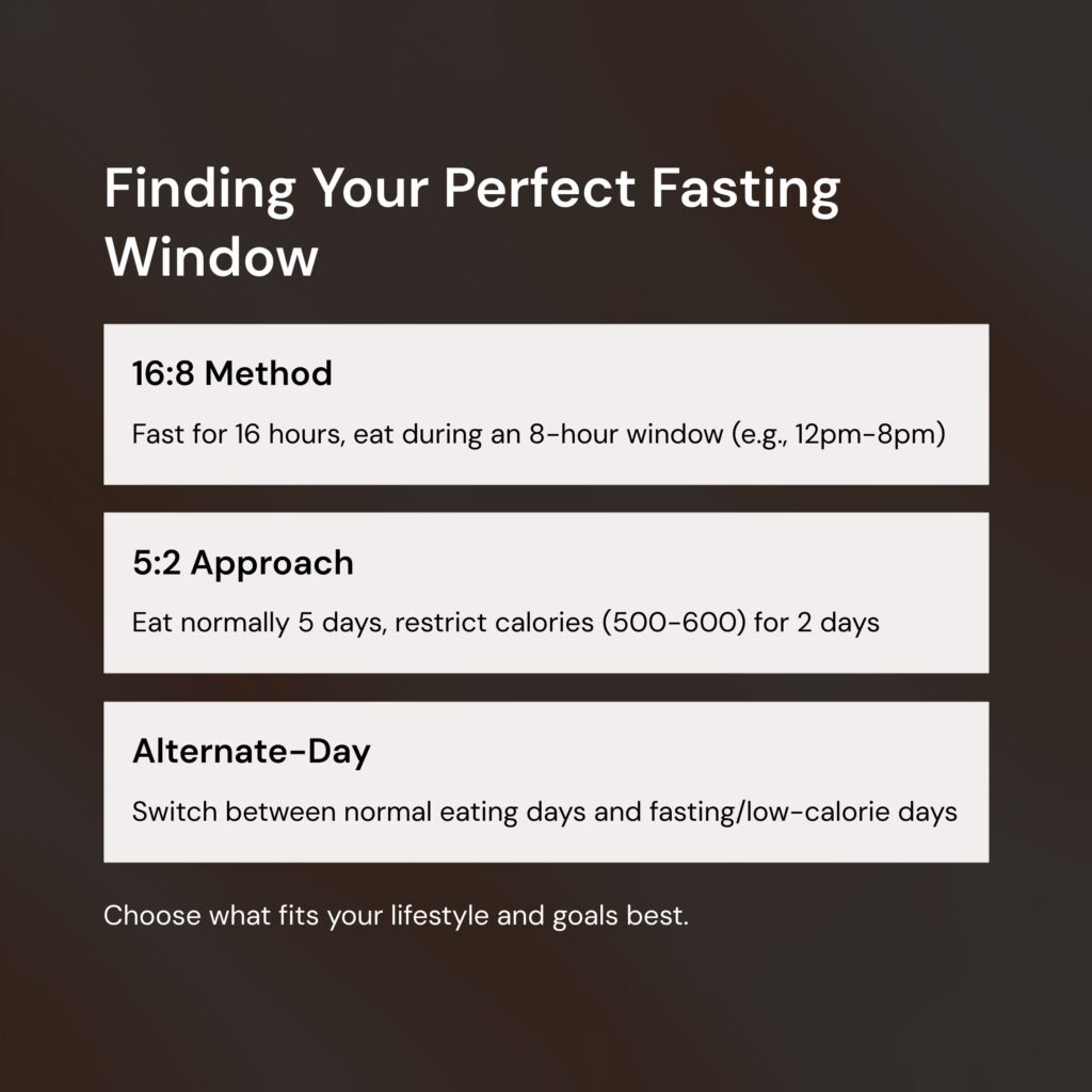 Success with intermittent fasting comes from finding the right approach for your lifestyle and staying committed to your chosen method.