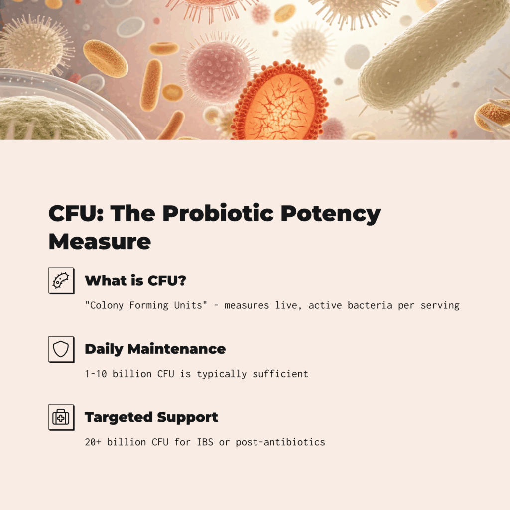 More CFUs generally mean greater potency, especially when dealing with digestive issues or immunity support.