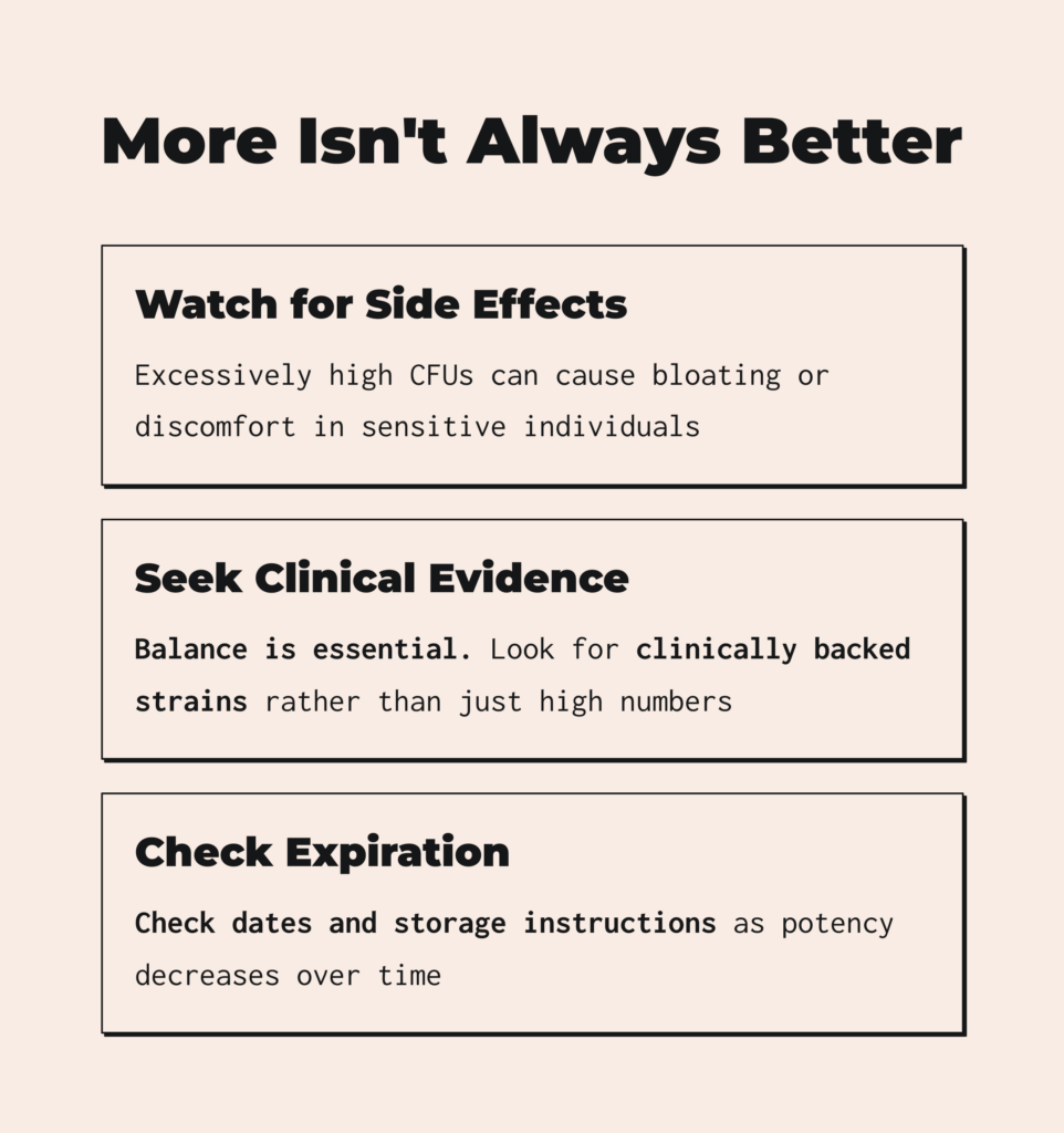 Excessively high CFUs can cause bloating or discomfort in sensitive individuals.