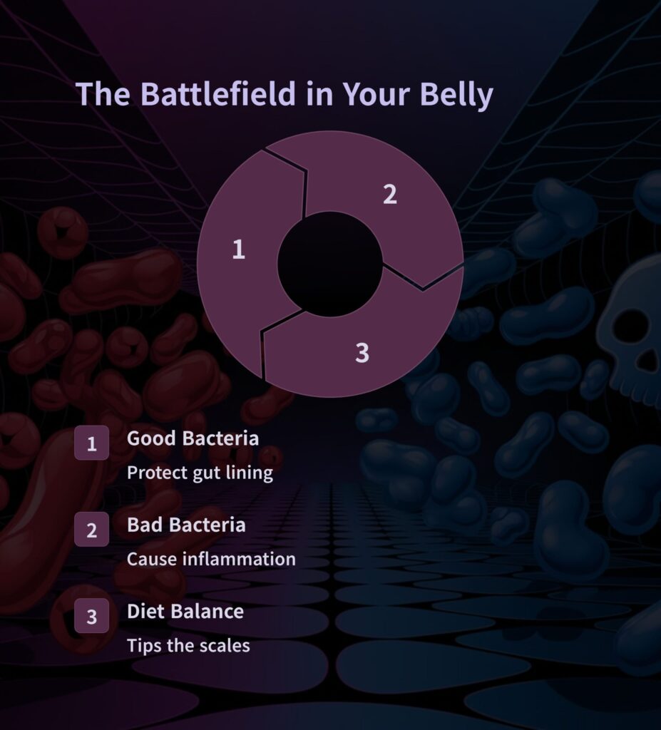 - Balanced gut flora reduces excessive inflammation throughout your body