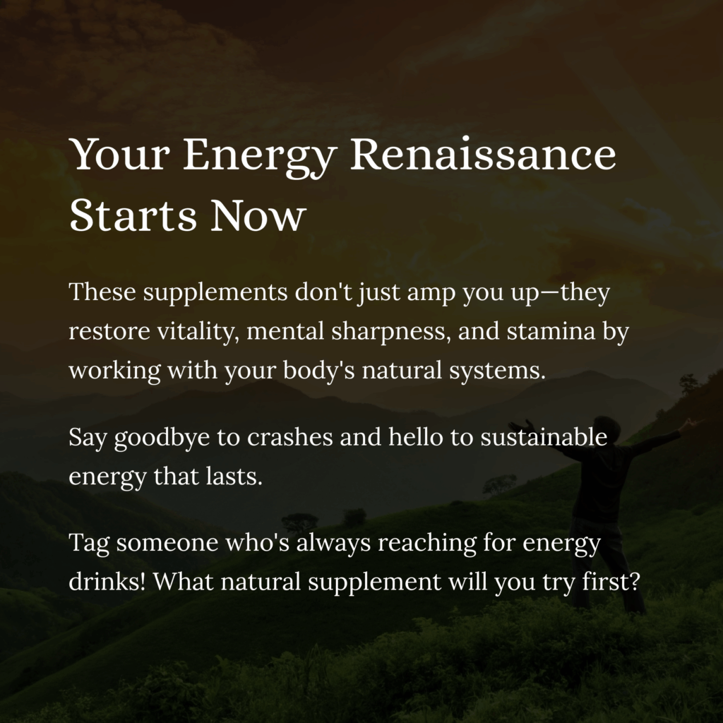 These supplements don’t just amp you up — they work with your body’s natural systems to restore vitality, mental sharpness, and stamina. Unlike energy drinks that splice alertness with anxiety, these powerhouses support both physical endurance and mental calm.